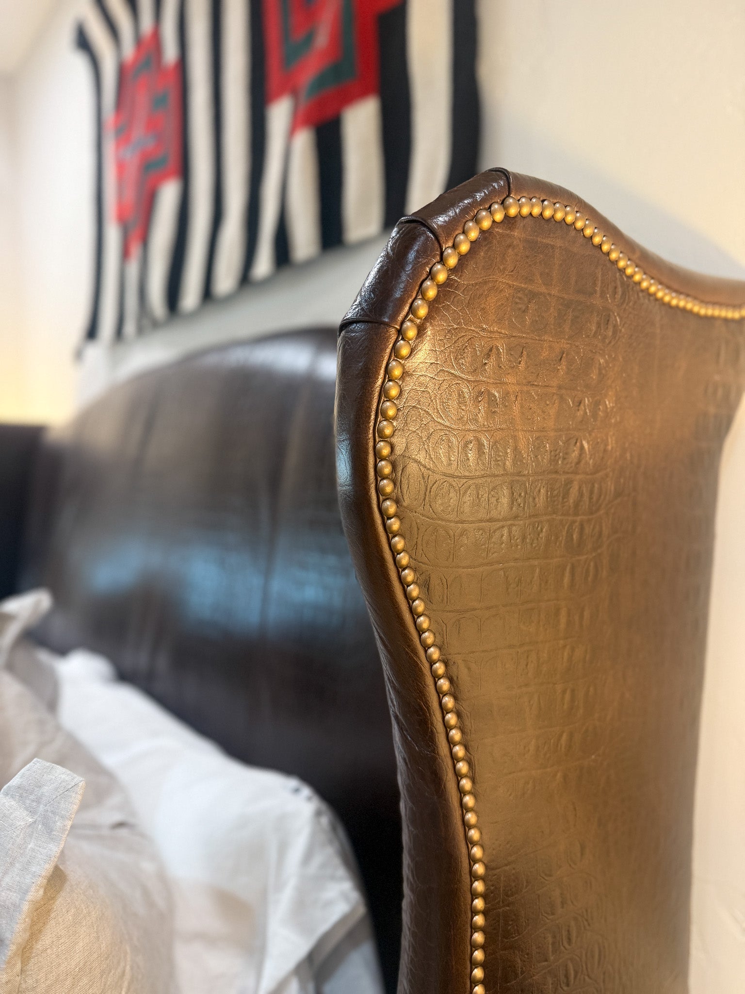 Crafted with meticulous attention to detail in North Carolina, this king bed brings serious Western elegance to your bedroom. Featuring genuine alligator accents and premium studs, the Blair delivers that coveted high-end ranch aesthetic. Sleep like royalty on a piece that's as bold and distinctive as you are.