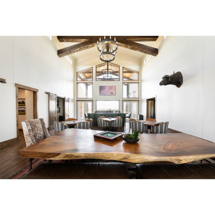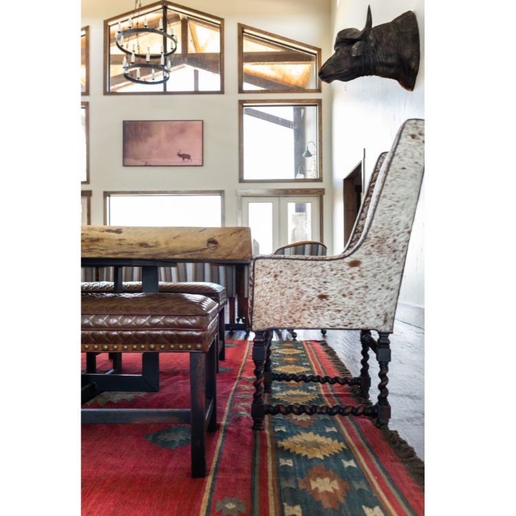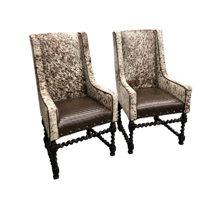 These cowhide chairs were inspired by Stuart Ranch's famous grey stallion, Real Gun. This 1997 stallion, sired by Playgun and out of Miss War Chips by War Chips, joined the program in 2002 and quickly became the 2004 AQHA Superhorse, NRCHA Limited Open Bridle World Champion, and a top producer of our program. Real Gun's offspring have proven to be consistent and valuable additions to their breeding program.